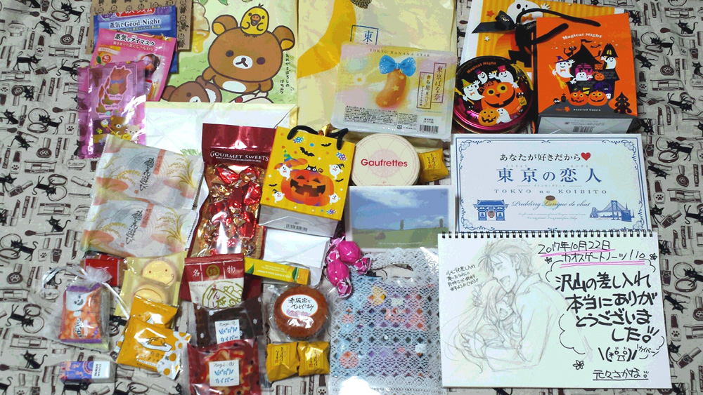 イベント情報 2017/10/26 カオゲノ!10お疲れ様でした 少し日数が経ちましたが、カオスゲートノーツ!10お疲れ様でしたヽ(*´∇`)ノ凄い悪天候でしたが沢山の方にスペース来て頂いて本当にありがとうございます。差し入れも凄い沢山………っ!!!!!もう本当にありがとうございます、皆様大好きです(*>Д<) 差し入れは原稿中に頂いてうちのオカクリ達に伝えておきます。本当にありがとうございました。多分来る時も帰るときも一時的に雨酷かったと思うんですが、濡れて風邪引かれたりしませんでしたか?大丈夫ですか??(; ・`д・´)何だかイベント終ってから体調悪いぞ?って方は、これから気温下がったりしますんで暖かくしてゆっくり休養して下さいねっ!当日は販売時間少し遅れてしまってすみませんでした!準備遅いほうではあるので一応サークルでは一番で9:00に会場入りしたんですが、思うように準備が進められなくて本当に申し訳ありませんでした。ツイッターで遅れる連絡したら「慌てないで大丈夫」と言って下さった方、ありがとうございます。後日ミスが発覚してしまって申し訳無い事をしてしまいましたが、なんとかイベント終了できました。ご迷惑おかけした方には本当にごめんなさい(>人<)ハロウィンのお菓子にと思ったオカクリキットカットも無事にみなお嫁に行きました、ありがとうございます*。ヾ(。>v<。)ノ゙*。実は今回のお菓子、台風をまったく考慮せずに発注してしまいまして(大汗カオゲノで用意したおまけでは最大数注文してしまったんですよね…馬鹿です、本当に(。>﹏<。)なので無事にうちのオカクリが全部お嫁に行けて本当に良かったですWお嫁に出しすぎてうちのサークルスタッフには1つも残らなかったので、皆さん是非召し上がって下さい!私の代わりに!w最後に1箱残してうちのスタッフで分けて食べようと思って取っておいたんですが、私がスペース留守にしてる間に売り子さんがお客さんにお渡ししたみたいです。理由を聞いたら「凄い沢山本買ってくれたから嬉しくなって渡しちゃった」だそうです。それ言われたら「よくやった!」としか言えませんw貰って下さった方々、本当にありがとうございます。ほんの気持ちですがそのお菓子で皆さんのイベント疲れが少しでも回復できれば嬉しいです(*´∀`*)新刊も…まぁこっちも台風まったく考慮せずに搬入しちゃったんですが(頭抱え先ほど残部計算したら、とても沢山の方に手にして頂けたんだな…と。シリーズ物は大体売り上げ部数が少しずつ下り坂になりやすいと思いますし、その上あの天候の中でしたので。目で数字を確認して「ありがとうございます」と思わず感謝しました。うちの玄関先で。ダンボールに囲まれたままwこの温泉シリーズはとても沢山の方に本を手にして頂いて、色々な方と縁を結んでくれたと思います。ここまで温泉のじれったいオカクリ達に付き合って頂きありがとうございました。ひと言でも感想とか聞かせて頂けると凄く…嬉しいです(´ω` *)さて次のイベント参加は受かってれば冬コミになります!当落出るの確か来週の土曜日だったかと…。うううっ、本当にこの当落出る日は生きた心地しません。無事に受かってまた皆様と会えますように!(>人<)また受かってたらブログに告知に来ますね。いつも拍手押して下さる方、本当にありがとうございます!ちゃんとチェックして拍手の数とか見てます!ブログ更新して拍手押されてるの見ると凄く嬉しいです♡(*>ω<)また気が向いたら押してやって下さいね。それではイベントお疲れ様でした(*´∀`*)ノシ
