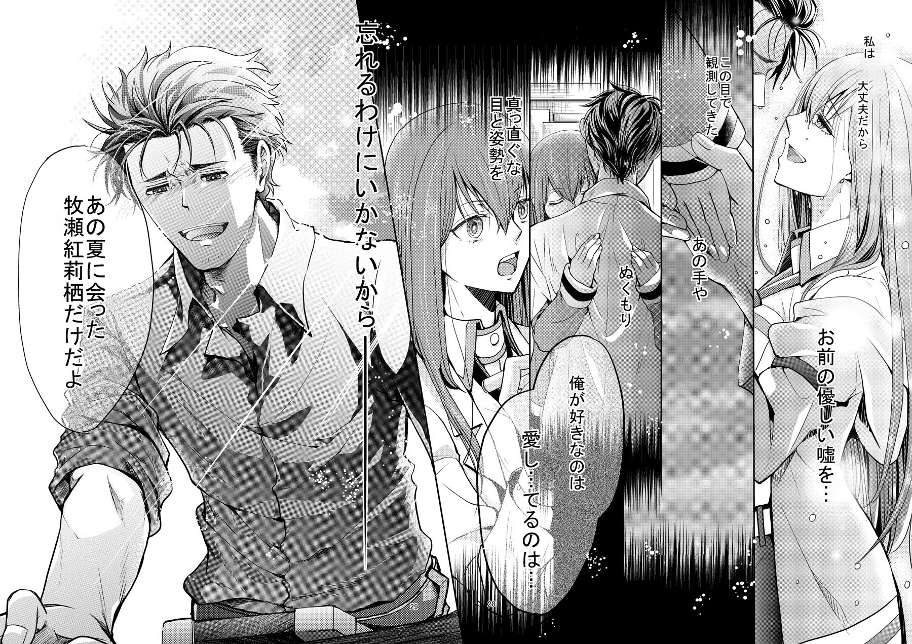 イベント情報 2018/08/11 【C94新刊①】ファインダーアウト 告知がギリギリ遅くなってすみません(>人<)今日は告知のため3回くらいブログ更新すると思いますので宜しくお願いします。まず新刊1冊目のお知らせです。 「ファインダーアウト」B5・52P・600円シュタゲゼロの重大なネタバレが含まれてます、ゲーム設定です(アニメじゃなくてすみませんっ)辛くても苦しくても紅莉栖への気持ちだけは見失わない様にするお話です。書店委託はとらのあな様にお願いしてます。 アニメの設定で描ければよかったんですが、描くのが遅いので準備始めたのが4月1週目で。放送もアニメ展開もどうなるか分からなかったのでゲーム設定にしました。ルートは「私秘鏡裏のスティグマ」です。よりによってこのルートですみません。他のルートでもっと明るい展開にしたかたんですが、描きたい部分を入れられそうなのがスティグマしかなくて(;∀;)ゼロは色々辛い部分がありますが「オカリンが紅莉栖ちゃんへの気持ちだけはしっかり持っててくれれば前を向いて信じて見届けられる」と思って。私がゼロと向き合うための心の準備の為に「愛している」とゼロリンに言わせたかっただけの漫画です。いつも描くオカクリとは世界線も表現も違いますが「岡部倫太郎は牧瀬紅莉栖が好きで好きでどうしようもない」っていうテーマはいつもと同じです。でもこのテーマでゼロ描くとどうしても暗くなっちゃいますよね~orzそれでもオカリンが紅莉栖ちゃんを好きな気持ちだけはしっかり伝わる様に頑張ったので、宜しければ見て頂ければ嬉しいです。もう本当にゼロリンの黒のおかげで、手が痛いというより骨がミシミシするくらい頑張ったので何とぞw PR