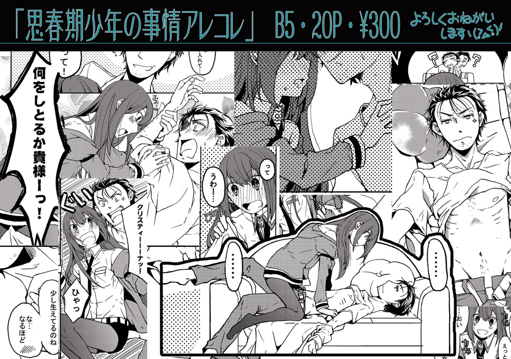 イベント情報 2016/08/10 【C90】新刊告知 こんばんは、今日は新刊の告知になります。一応2冊…とは言えませんが、2種類はありますのでw宜しくお願いします(*´Д`*)「温泉に行こう!準備号」コピー・20P前後・100円 はい…すいません……落としました(土下座メインの本を落としました…欝だ…予定では70P位だったのですが、気が付いたら90P超えてて私の三ヶ月で描ける範囲をオーバーしました、すいません(;∀;)こちらの本ですが9月中旬ごろ書店委託で販売する予定です。その時はまた連絡しますね。本当に…この本を机に置くことを楽しみに作業ずっとしてたので…間に合わなくて数日落ち込んでました。落ち込んで腐ってたら他の準備まで日数足りなくなって、今焦ってます。何をやっとるんだ私はorz無料配布とも考えたのですが、無料で置いておくより100円で販売したほうが皆さん手に取りやすいみたいだったので100円にさせて頂きました。申し訳ありませんが宜しくお願いします。【C90新刊?①】温泉に行こう!準備号 by 元々さかな on pixiv「思春期少年の事情アレコレ」 B5・20P・300円 オカリンのムダ毛本です( ;・∀・)助手がオカリンのすね毛に興味持って、そのままムダ毛探索始めてオカリンがセクハラされるという内容です。これでもちゃんとオカクリですwゲストに羊毛さん(http://www.pixiv.net/member.php?id=16408574)ochaさん(http://www.pixiv.net/member.php?id=7527870)をお呼びしてます。お二人ともこのテーマでまさかの漫画で参加してくださいました(*´Д`*)すごく素敵なムダ毛wでしたので、是非見て頂きたいです/////申し訳ない事に、テーマがアレなものでw部数が少なめになります、すみません( ;・∀・)もし会場で手に入らなかったり遠方の方はとらのあなさんに委託お願いしてますので、よろしければご利用下さい。書店委託 とらのあなhttp://www.toranoana.jp/mailorder/article/04/0030/44/09/040030440906.htmlpixivにサンプルあります【C90新刊②サンプル】思春期少年の事情アレコレ by 元々さかな on pixiv記事が長くなってすみません。新しい本はこちらの2種類になりますので、宜しくお願いします(*´Д`*)
