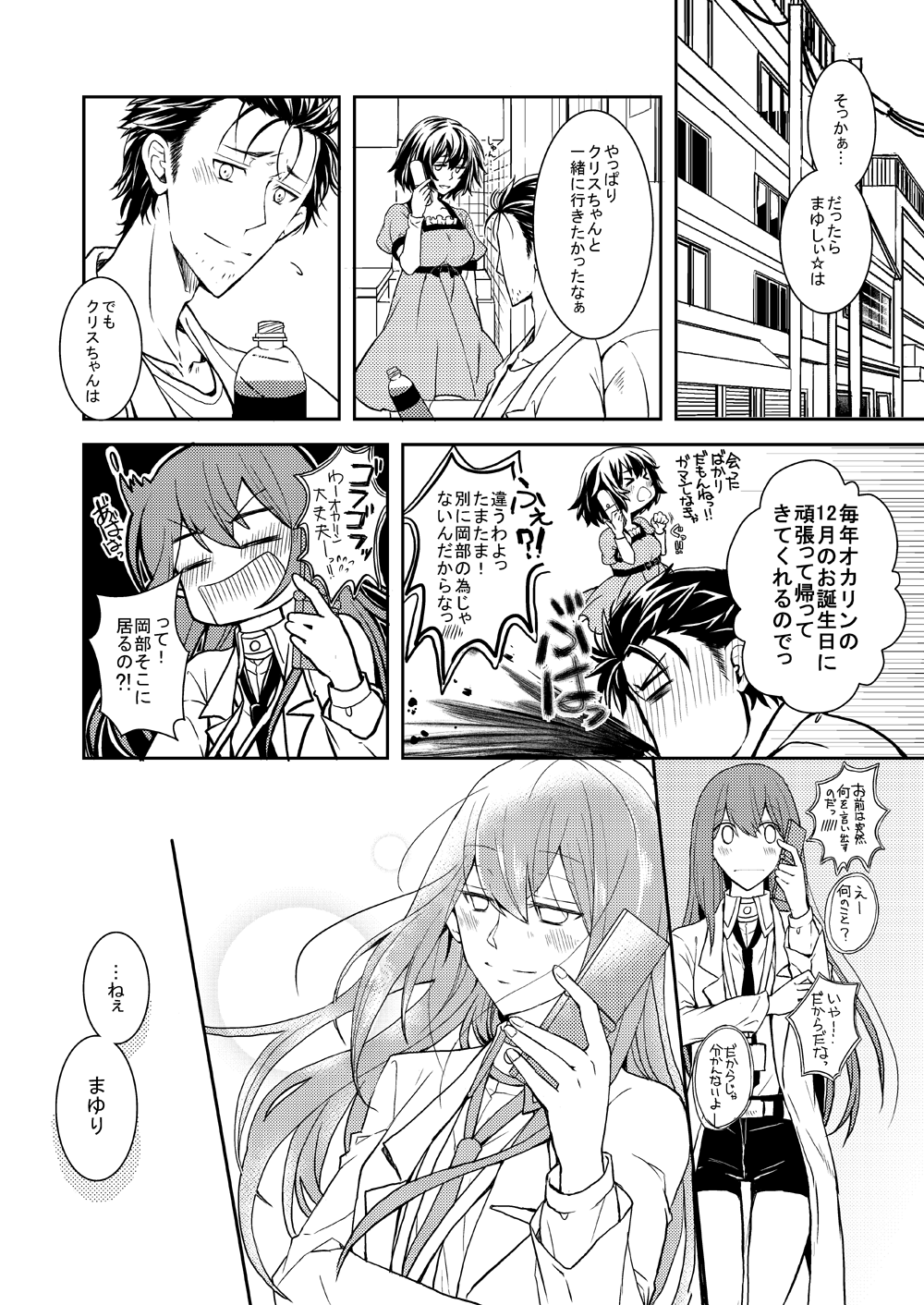Steins; Gate 2017/03/18 オカクリ 学パロ3本目 こんばんは(*´ω`*)実は今年も学パロアップしようと思っていたのですが…未だに完成しません。っていうか半分も描けてないorzイベント終ってすぐ描きはじめたんですが、体調が安定しなくて。先日やっと安定しはじめたのですが、今度は喉風邪引いてしまって( ;´∀`)熱はないので大丈夫なんですが、絵を描いてるときに歯を食いしばって喉をぎゅ~と締め付けるように力を入れてしまう癖があるもので、作業してると更に喉を痛めてしまって。悪循環繰り返して長時間作業できなくてまだ半分描けてない……。喉風邪はうちの家族が弱くて、すぐうつっちゃうので。家族で悪化しないためにも様子見ながら作業進めていくので、もう少し時間がかかると思いますがうpしたら見て頂けると嬉しいです(*´∀`*)今回の話は紅莉栖ちゃんがバレンタインに渡したチョコとホワイトデーにオカリンが渡したプレゼントの話です。残念ながらいつもよりは糖度低めですが、前回のアレの直後の描写がちらっとあります。本当は三月の間に学パロをもう1本うpしようかと思っていたんですが、体ヨレヨレでw温泉後半の原稿も控えてるので描こうかちょっと迷うところです。う~ん、でもできたら描きたいなぁ////記事の下に拍手のボタンがあるんですが、押してくださる方々!!本当にありがとうございます!拍手押された回数とかちゃんと見てます。最近押してくださる方いらっしゃって、すっごく楽しみです(*´∀`*)今度、暇を見つけて拍手にお礼絵付けたいです!動機がとってもちょろいですwでも趣味でちまちま描いてる絵描きなんてこんなものです。なので気が向いたら拍手押してやってください。多分ブログの更新頻度が増えますw最近ちょっと絵に対してのメンタルが弱ってるので拍手とか見ると元気出るんですよ。絵心ないのにごり押しで描いてるんで、すぐ心がボキっと折れて蹲りたくなるもので( ;´∀`)情けない限りですwそれではまたうpしたらお知らせに来ますね。