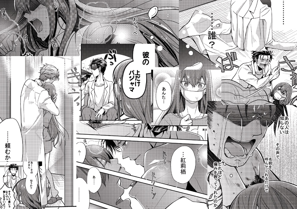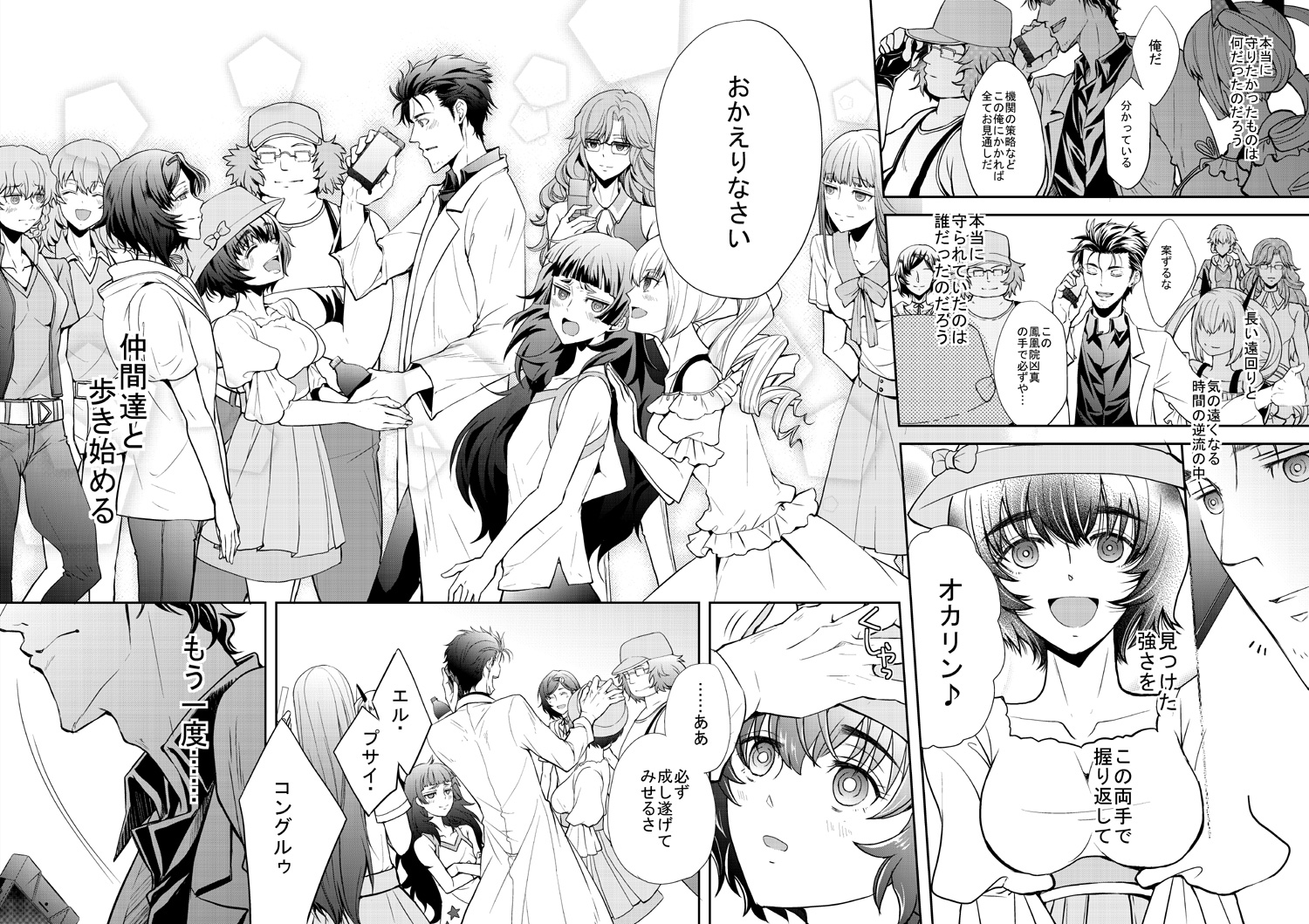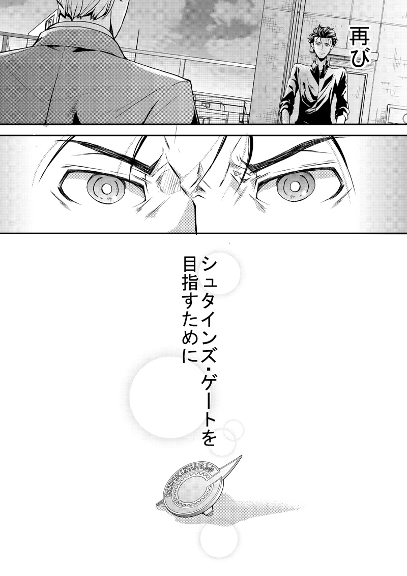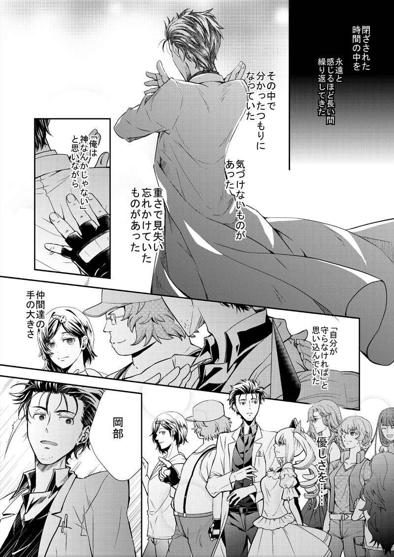 Steins; Gate 2018/12/30 【C95新刊サンプル①】負荷思想のクノッソス・前編 こんにちは。随分とご無沙汰な更新で、しかも告知がギリギリですみません((><))何とか新刊用意できたのでご案内させて頂きます。「負荷思想のクノッソス・前編」64P・800円書店委託とらのあな様 https://ec.toranoana.shop/tora/ec/item/040030695367 デジャヴでオカリンが即決で「構わない」と自分を犠牲にする事を選んだ事がショックで。いや…分かるけどっ!!分かるんだけど!!!でもシュタゲ見てる時。まゆしぃも紅莉栖ちゃんも助かって欲しかった気持ちもありますが、オカリンが心から笑える世界線にたどり着いて欲しくて。だから1番最後の「これがシュタインズゲートの選択だよ」って穏やかな声に涙が出たのに…。だからどうしてもあの判断が凄く悲しくて。せめて自分が助かる方法があるのか位聞いて欲しかった…。でもあれだけ辛い時間を過ごしてきて、罪悪感を抱えてるオカリンだからあの判断だったんだよなって納得もしてて。でもやっぱり凄く、凄く、悲しくて。なので私なりの方法でオカリンは世界に否定されてるわけじゃない。貴方は生きて幸せにならなきゃいけないんだ…って言いたくて描きはじめた漫画です。後編の方が分厚いので完結までちょっと時間がかかりますが、宜しければお付き合い下さい(*´∀`*)