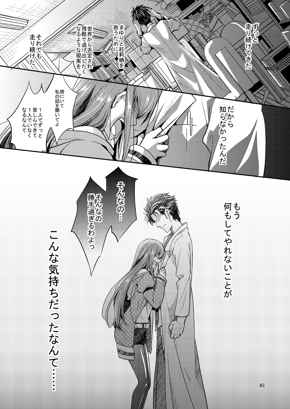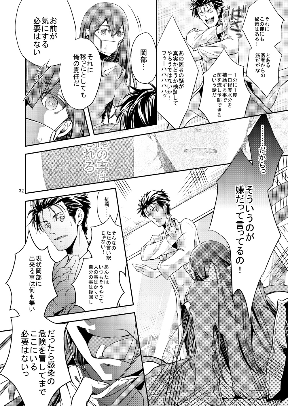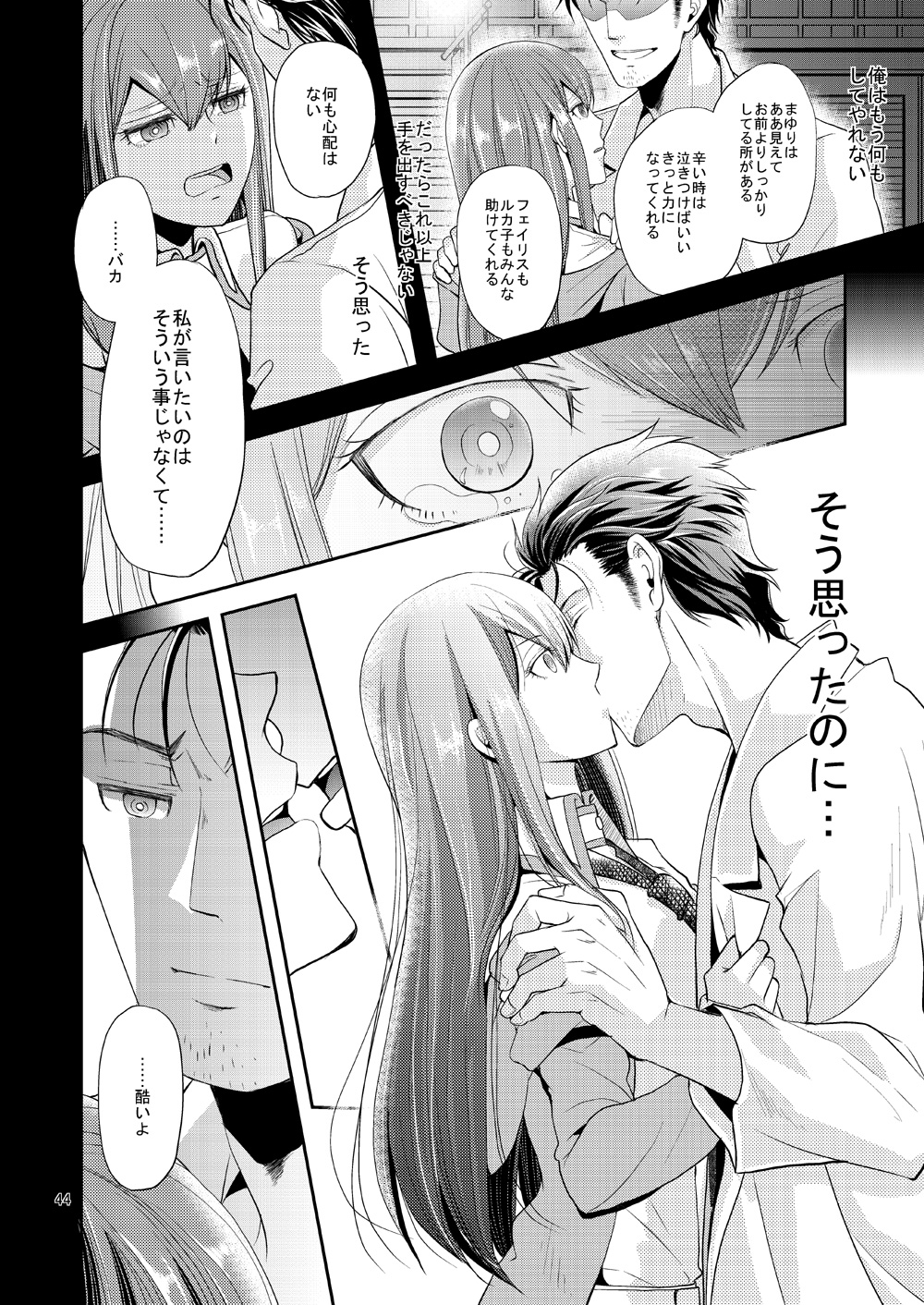 Steins; Gate 2018/12/30 【C95新刊サンプル①】負荷思想のクノッソス・前編 こんにちは。随分とご無沙汰な更新で、しかも告知がギリギリですみません((><))何とか新刊用意できたのでご案内させて頂きます。「負荷思想のクノッソス・前編」64P・800円書店委託とらのあな様 https://ec.toranoana.shop/tora/ec/item/040030695367 デジャヴでオカリンが即決で「構わない」と自分を犠牲にする事を選んだ事がショックで。いや…分かるけどっ!!分かるんだけど!!!でもシュタゲ見てる時。まゆしぃも紅莉栖ちゃんも助かって欲しかった気持ちもありますが、オカリンが心から笑える世界線にたどり着いて欲しくて。だから1番最後の「これがシュタインズゲートの選択だよ」って穏やかな声に涙が出たのに…。だからどうしてもあの判断が凄く悲しくて。せめて自分が助かる方法があるのか位聞いて欲しかった…。でもあれだけ辛い時間を過ごしてきて、罪悪感を抱えてるオカリンだからあの判断だったんだよなって納得もしてて。でもやっぱり凄く、凄く、悲しくて。なので私なりの方法でオカリンは世界に否定されてるわけじゃない。貴方は生きて幸せにならなきゃいけないんだ…って言いたくて描きはじめた漫画です。後編の方が分厚いので完結までちょっと時間がかかりますが、宜しければお付き合い下さい(*´∀`*)